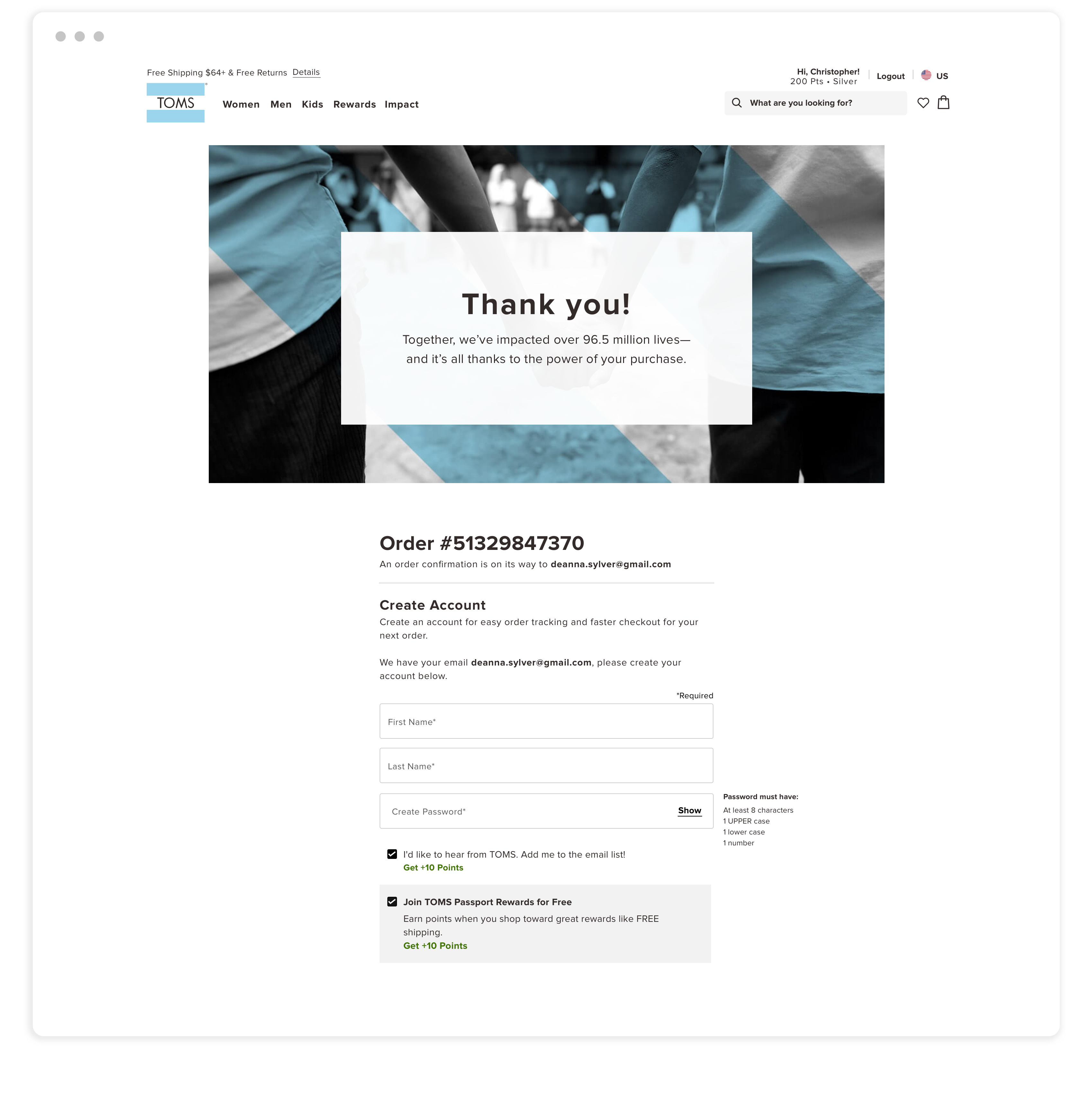 Reduce cost, reduce friction, and reduce dependency on teams on TOMS.com